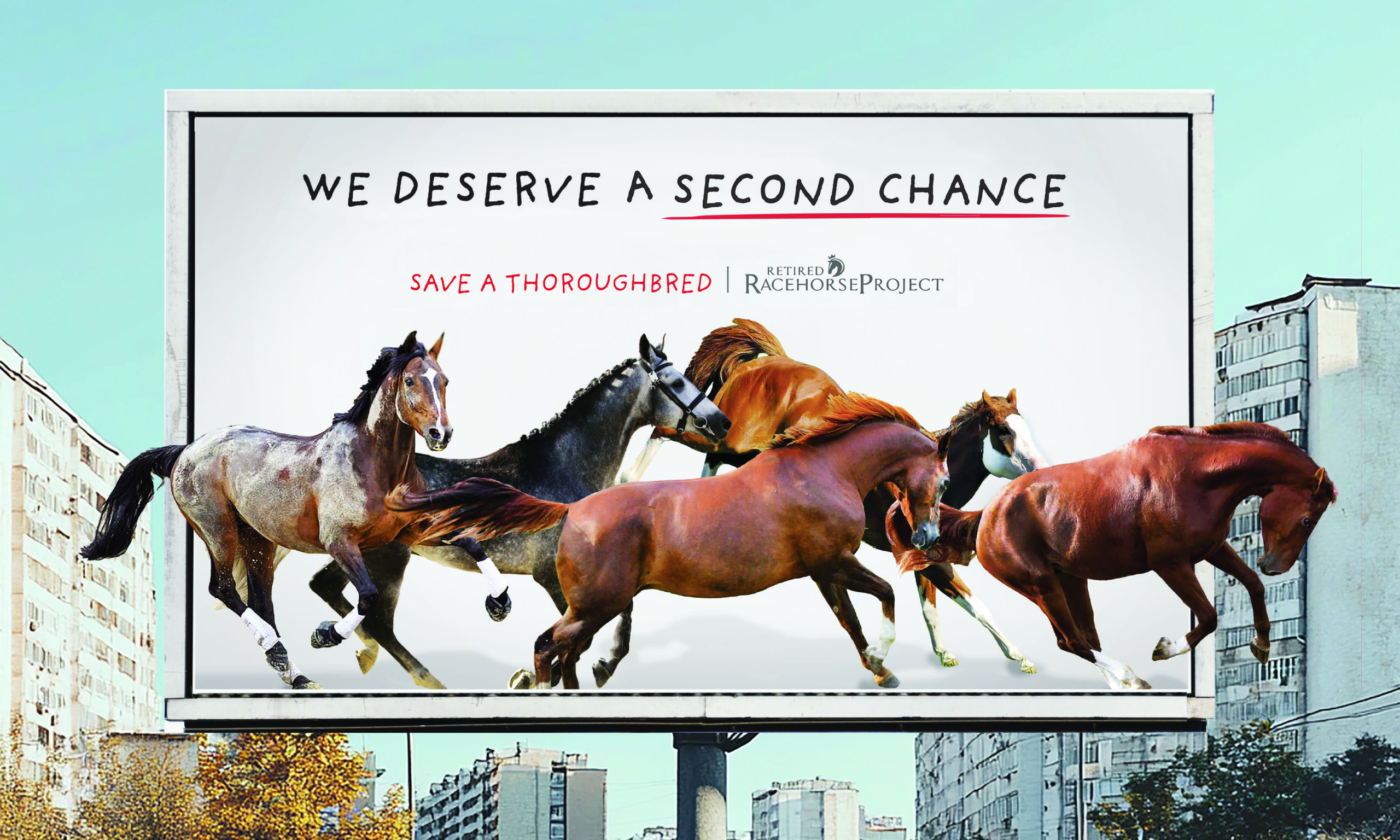 An OOH advertising campaign focused on driving awareness about the Retired Racehorse Project. This organization helps transition young racehorses from the racetrack to their new lives.